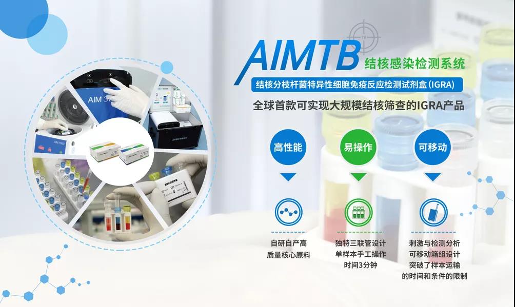 ● AIMTB基于結(jié)核分枝桿菌特異性細胞免疫反應(yīng)(γ-干擾素釋放試驗),是一種快速體外檢測結(jié)核感染的新方法,具有不受卡介苗影響,特異性高,不受患者排菌期、排菌量的影響,無需復(fù)診等優(yōu)勢,是國際首款可實現(xiàn)大規(guī)模結(jié)核感染篩查的IGRA產(chǎn)品。